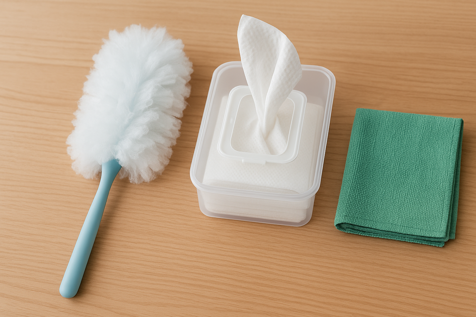 ハンディモップ、ウェットシート、マイクロファイバークロス、ミニブラシ、小物トレー、小型ゴミ箱など、どれも手に入りやすく、初心者でも扱いやすいアイテムばかりです。